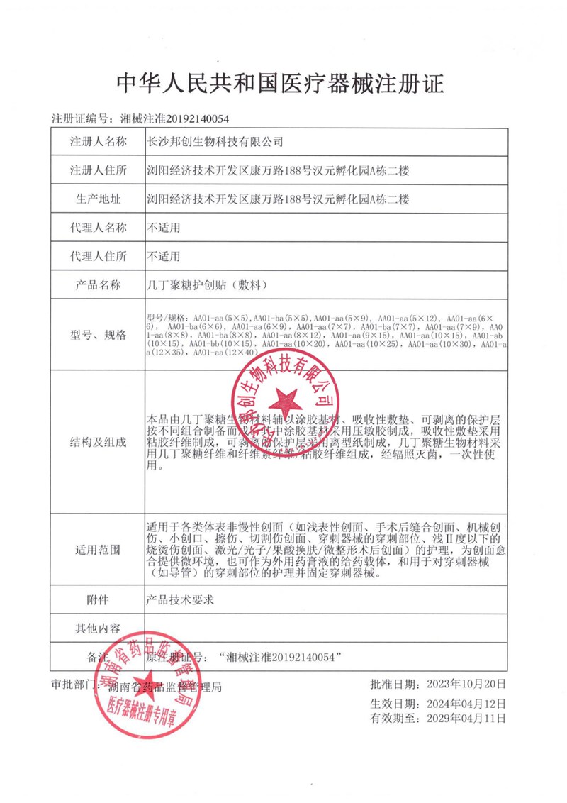 幾丁聚糖護(hù)創(chuàng)帖(敷料)-注冊證